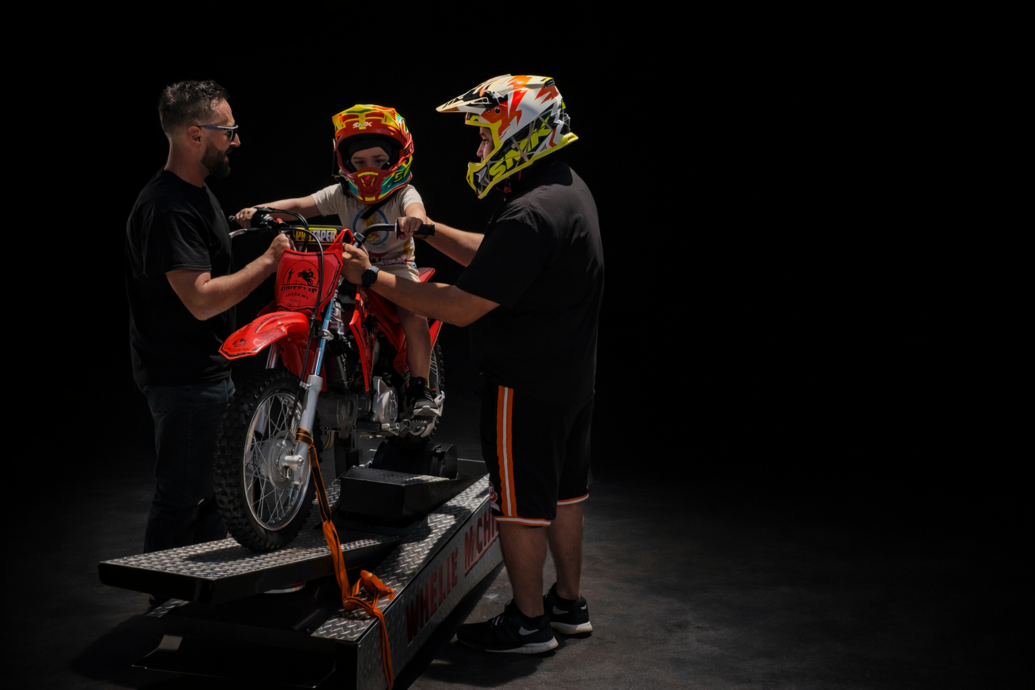 Wheelie Academy is the leading U.S. manufacturer of professional wheelie training machines and the nation’s most trusted destination for safe, controlled wheelie instruction. We design and build every machine in-house, offering DIY wheelie machine blueprints with video tutorials when purchasing the pallet pack with all required materials to build your own wheelie machine, and hands-on private wheelie training appointments. Riders can bring their own motorcycle—dirt bike, Harley, or street bike—or train on one of our fleet motorcycles.
